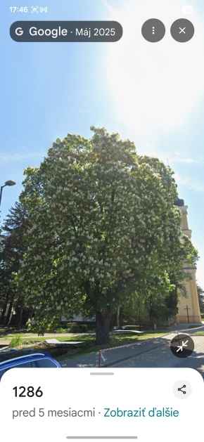 Rozkvitnutý pagaštan medzi kaštieľom a kostolom – spomienka na strom, ktorý už nestojí